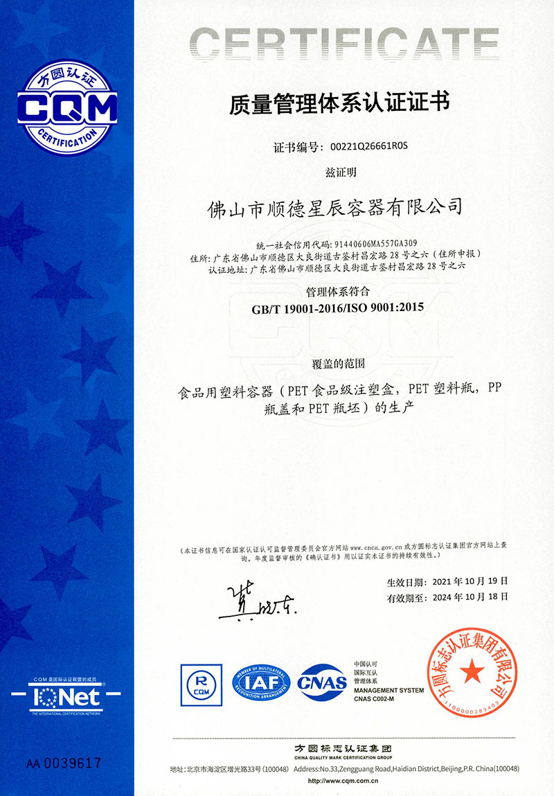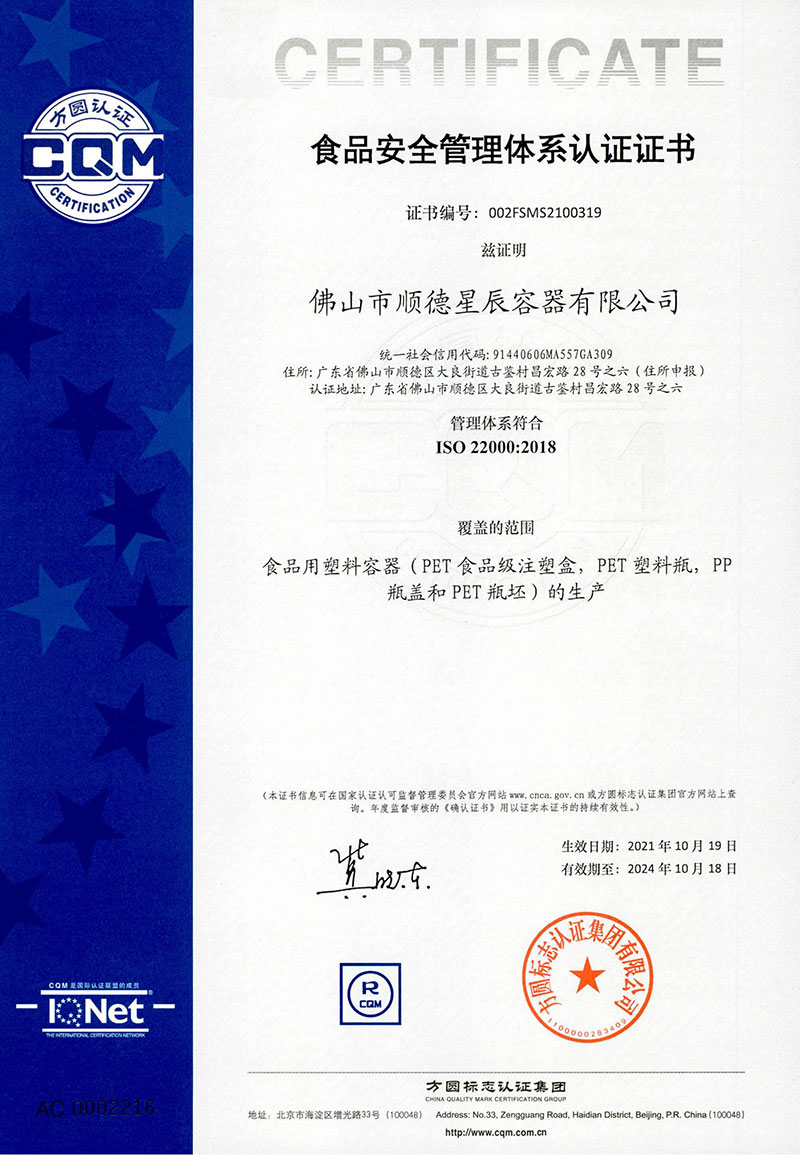 主要產(chǎn)品均以食品級(jí)全新PET為原材料,生產(chǎn)加工為PET注塑食品盒或PET瓶坯,塑料瓶是通過(guò)國(guó)家規(guī)定達(dá)到食品級(jí)要求空壓氣源吹制而成。成品通過(guò)高端機(jī)器設(shè)備 360°全方位無(wú)死角無(wú)盲區(qū)檢測(cè),并將有瑕疵的產(chǎn)品在線(xiàn)自動(dòng)剔除。此項(xiàng)技術(shù)改革避免了由傳統(tǒng)的依靠人手、目視及無(wú)統(tǒng)一的檢驗(yàn)標(biāo)準(zhǔn)、方法而造成良莠不齊的產(chǎn) 品等情況出現(xiàn)。
